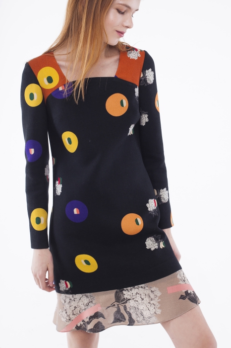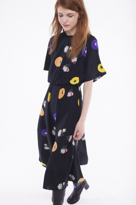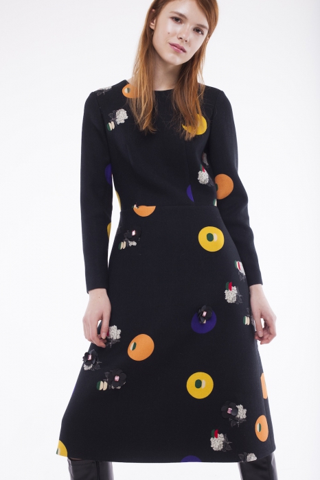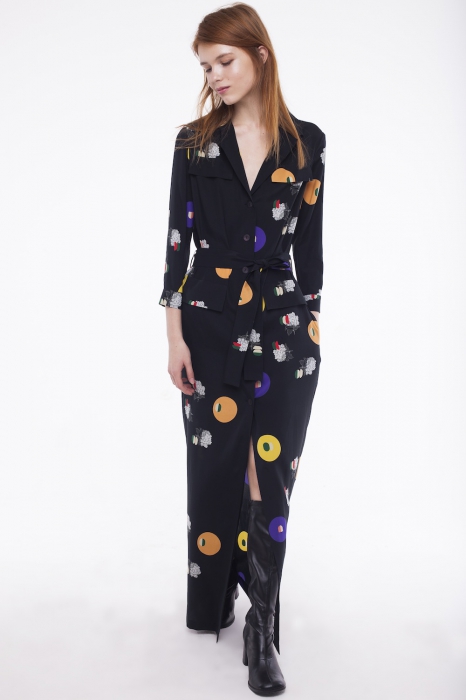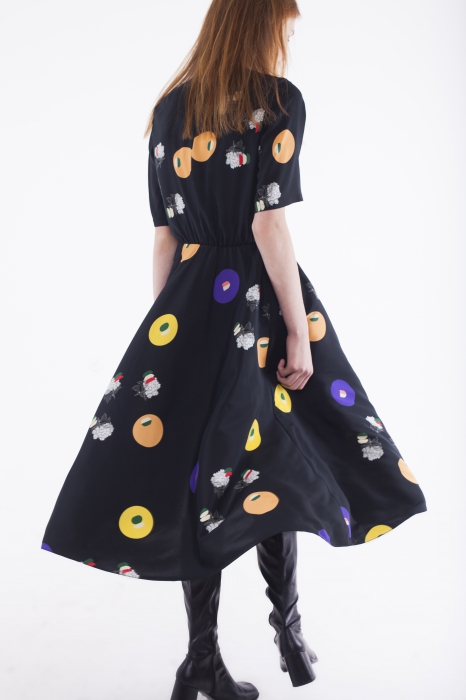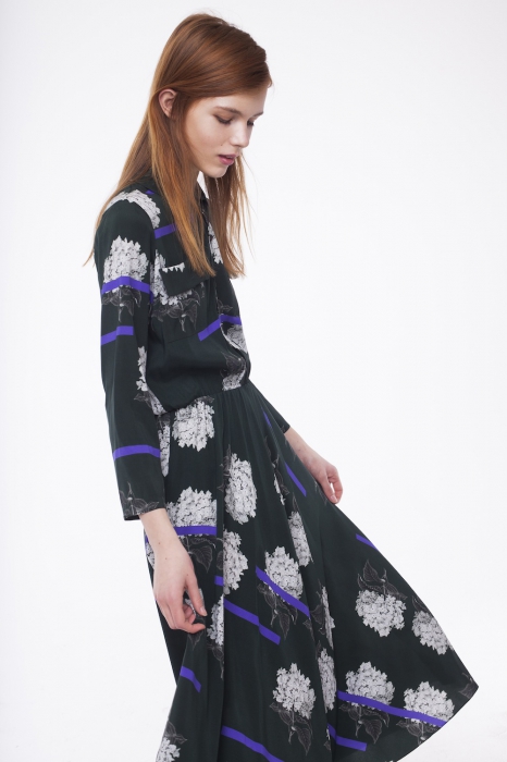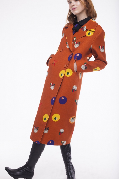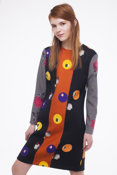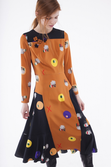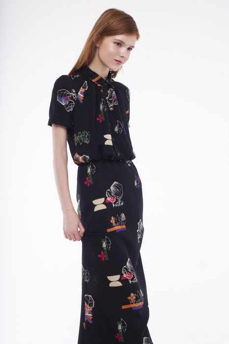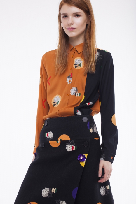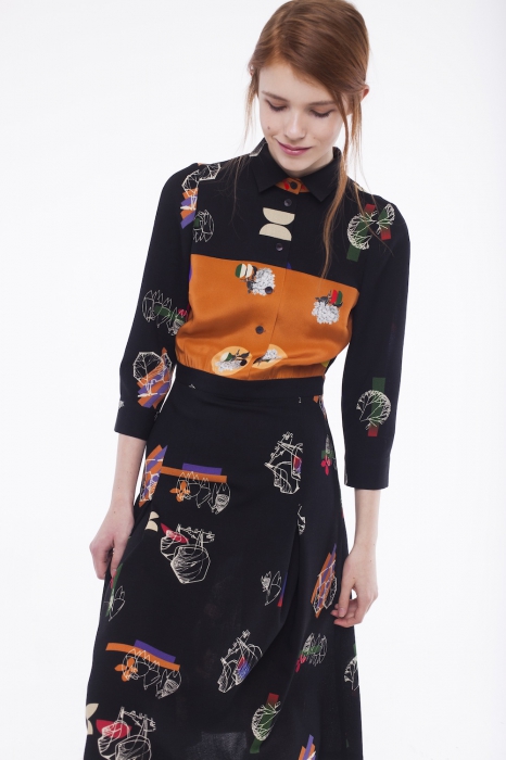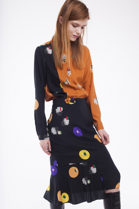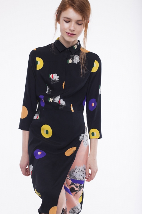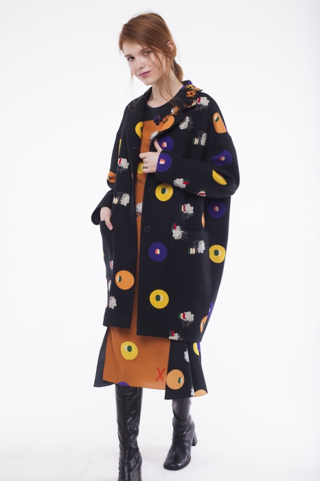 Дизайнер Лилия Пустовит умело сбалансировала все приемы современного искусства в осенней коллекции Poustovit: диджитал-арт-коллажи на платьях-сорочках соседствуют с аппликацией, а супрематические блоки на юбках миди сталкиваются с отпечатанными букетиками сирени, которые дублируются на пальто уже в виде лазерной перфорации.