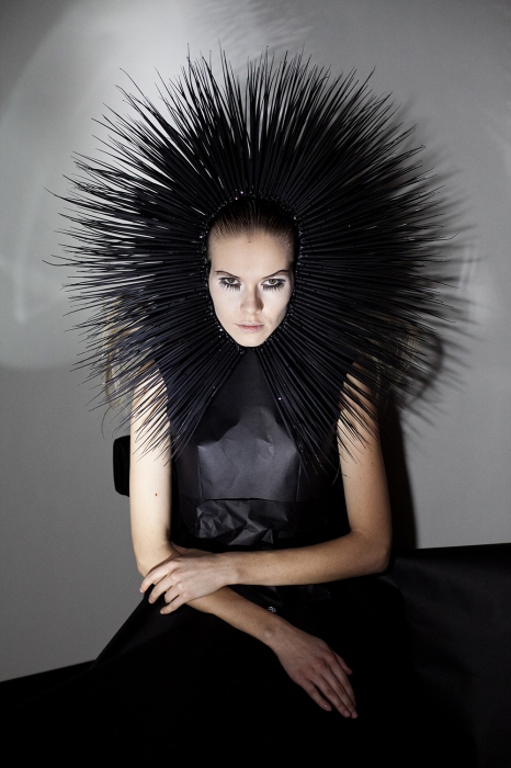 Штучные головные уборы ручной работы Константина Гайдая настолько сложны и эффектны, что их обожают стилисты глянца: еще бы, один аксессуар способен сделать весь лук. Помимо них дизайнер запустил линию футболок и свитшотов.
