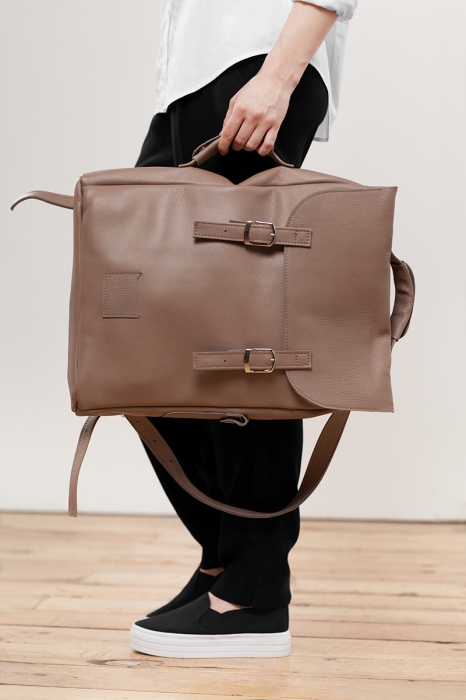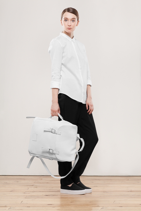 Архитектор Ася Мальберштейн значительно расширила ассортимент своей мануфактуры. Теперь в нем есть не только прочные кожаные рюкзаки и косметички, но и одежда: структурные пальто и платья для поклонниц художественного объединения «Баухауз», яркие водонепроницаемые плащи. К радости фетишистов, кожаные ошейники, бондажи и портупеи тоже на месте.