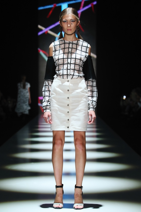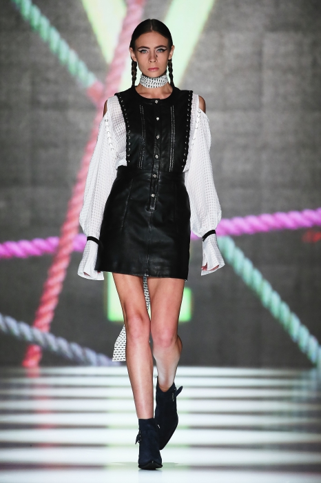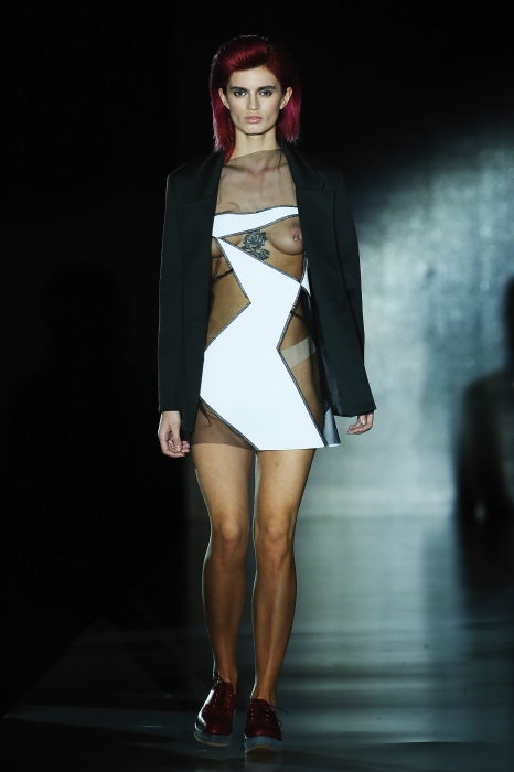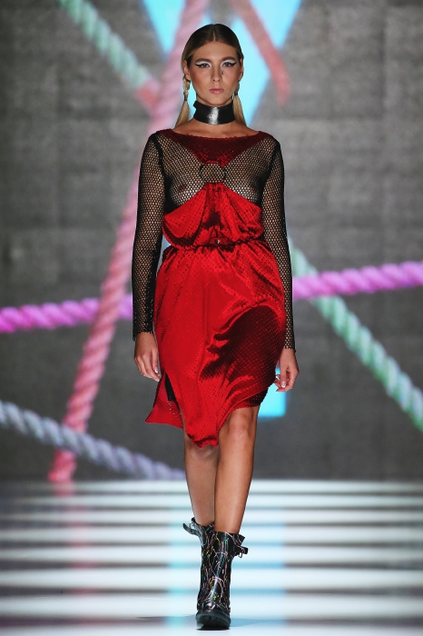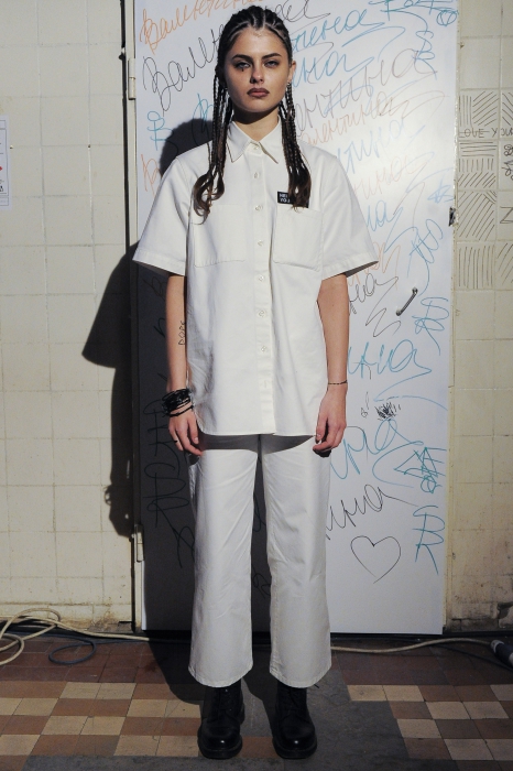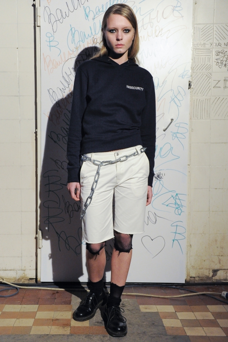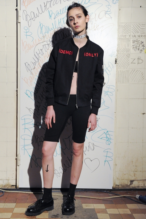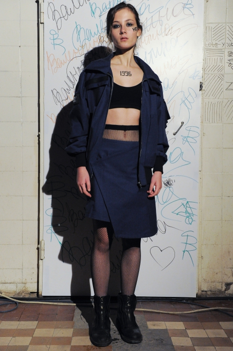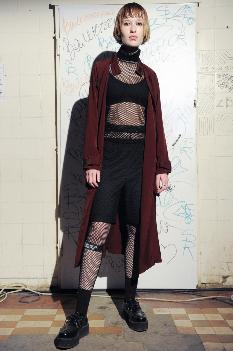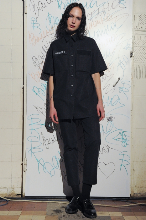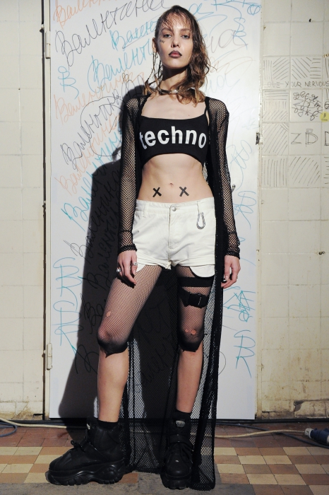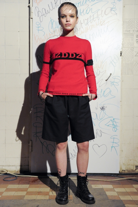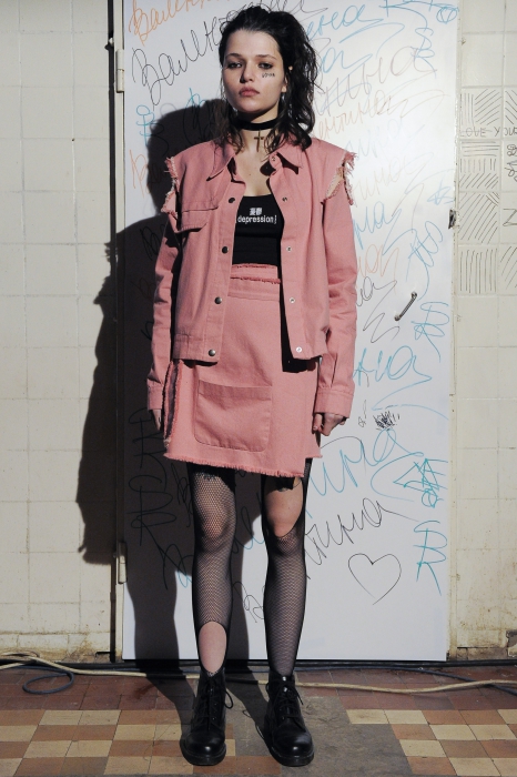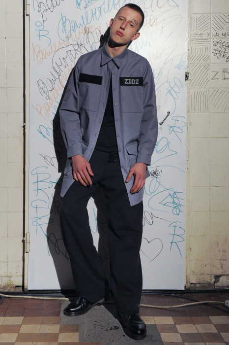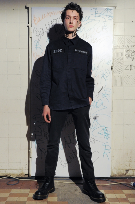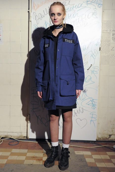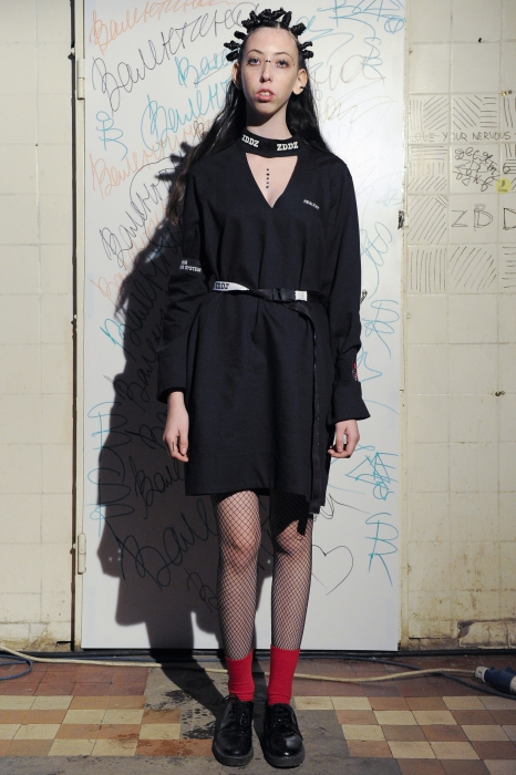 Бренд ZDDZ, основанный Дашей Сельяновой из Петербурга, представил новую коллекцию на Mercedes-Benz Fashion Week в Москве. Как и в предыдущих работах, Сельянова эксплуатирует фрагменты рабочей одежды, подросткового стиля и двухтысячных: здесь есть вульгарная сетка, рваный деним, топы с надписью Techno и Depression и костюмы, напоминающие аутфит охранников. Отдельного внимания заслуживает стайлинг: рваные колготки в сетку, темная помада с коричневой подводкой, чокеры на шею, косички и густая подводка на глаза сделали свое дело. «В центре коллекции Help Yourself — подростковая депрессия и то, как они с ней борятся. Я говорю про наркотики, еду, шопинг, музыку», — комментирует Сельянова. Интересно, что моделей харизматичных типажей для презентации нашли благодаря онлайн-кастингу в Instagram.