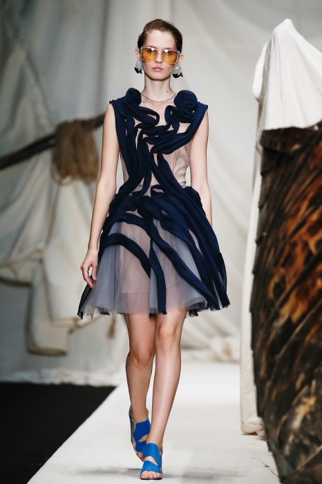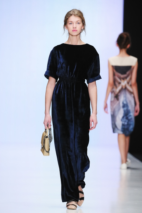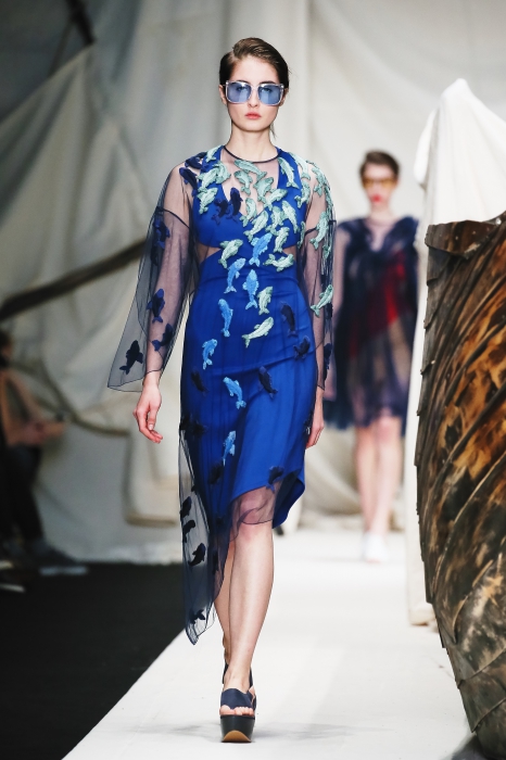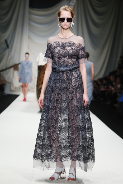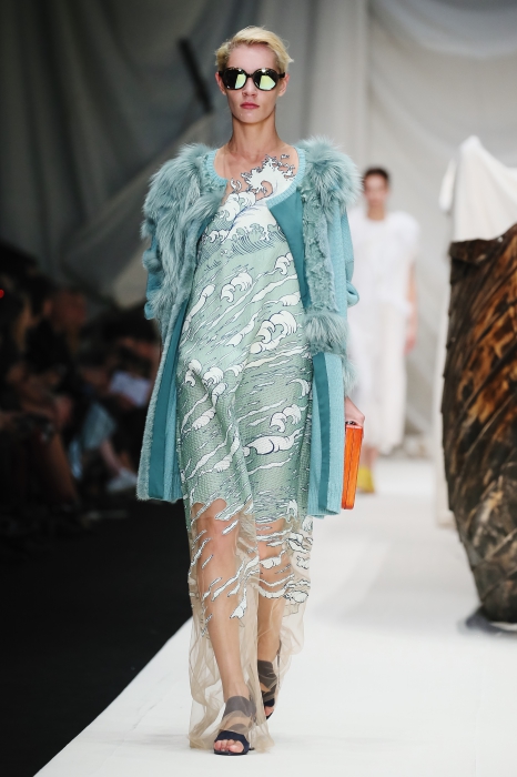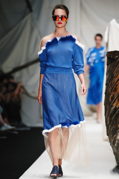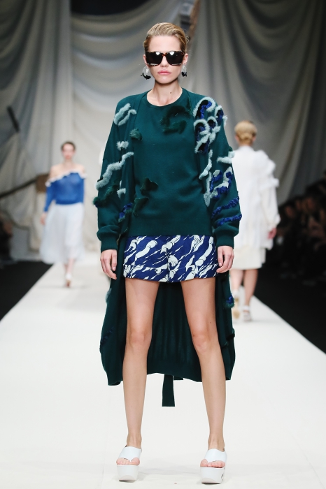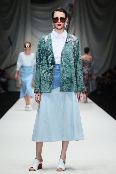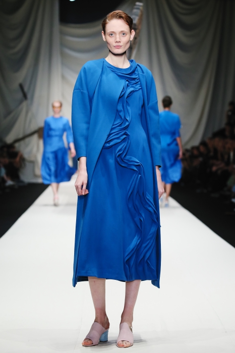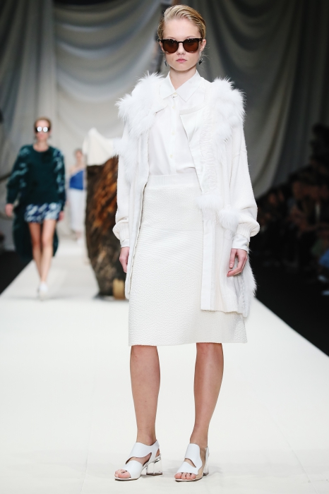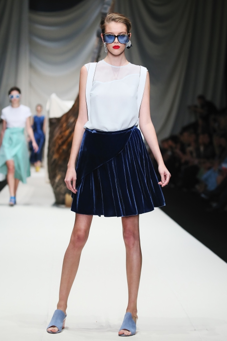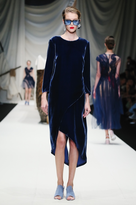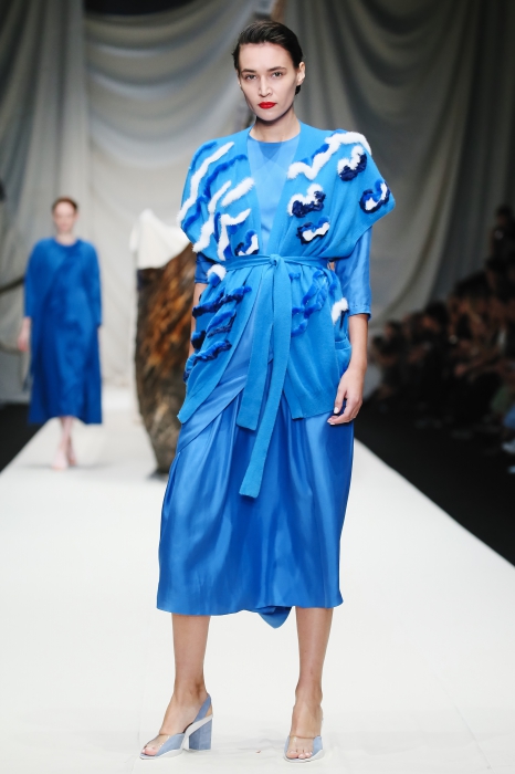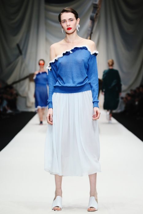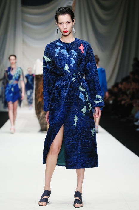 Хедлайнером первого дня Mercedes-Benz Fashion Week Russia в Москве стало шоу Алены Ахмадуллиной. Дизайнер из Петербурга продолжает пропагандировать русские коды: на этот раз главной темой коллекции стала сказка «Садко» с ее подводным миром. Под шум прибоя шоу открыли модели в белоснежных платьях и брючных костюмах, следом — голубые и бирюзовые наряды, а завершали показ глубокие оттенки синего — например, на топах с отделкой в виде морской пены, бархатном платье или меховом пальто.