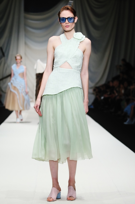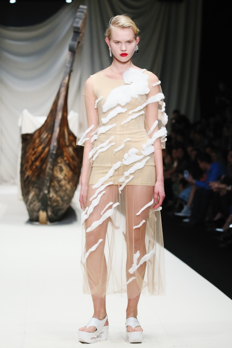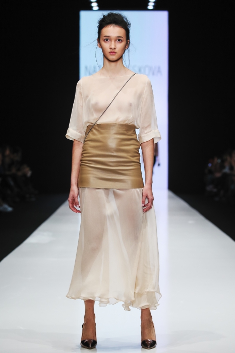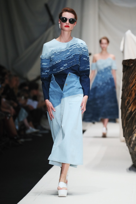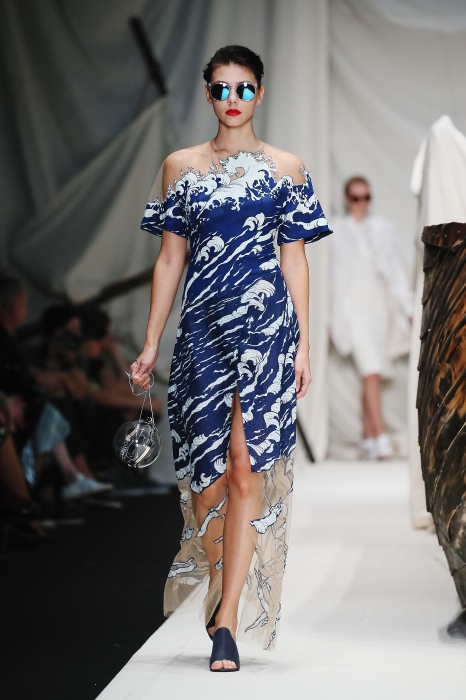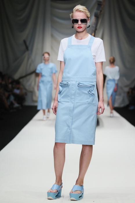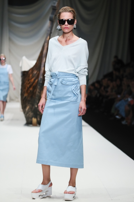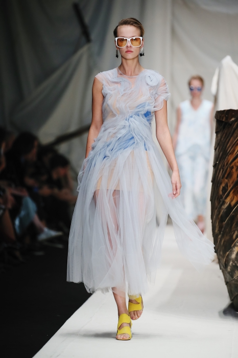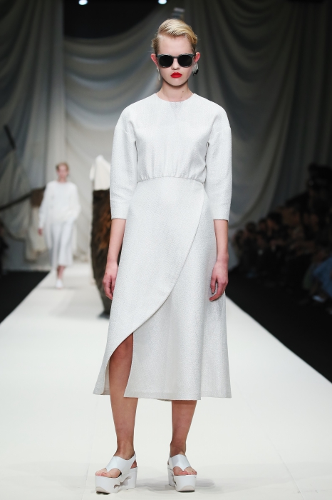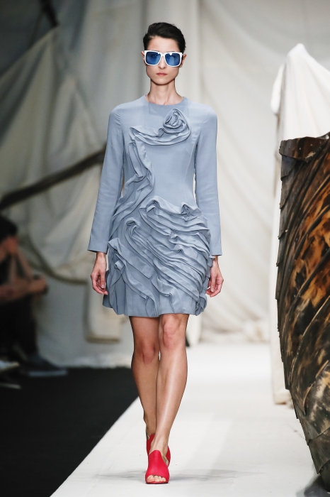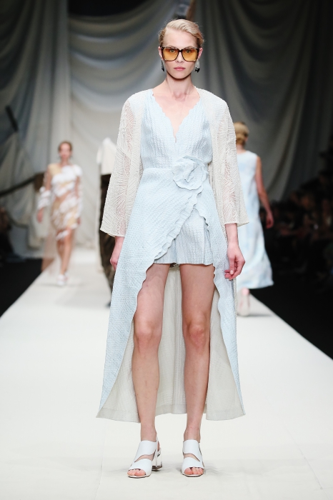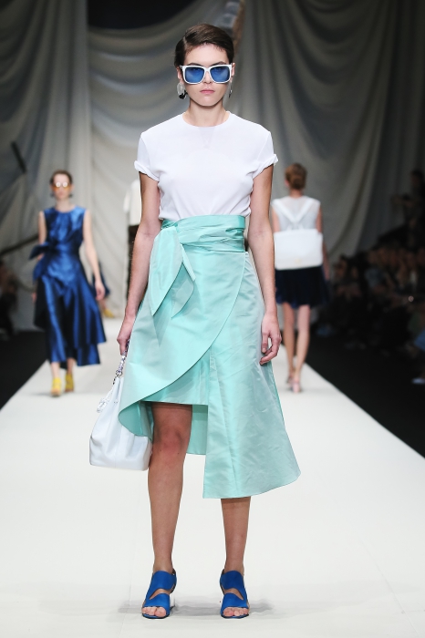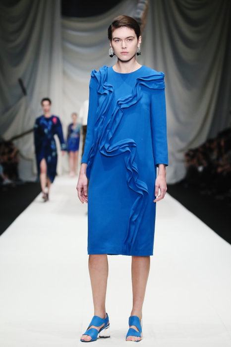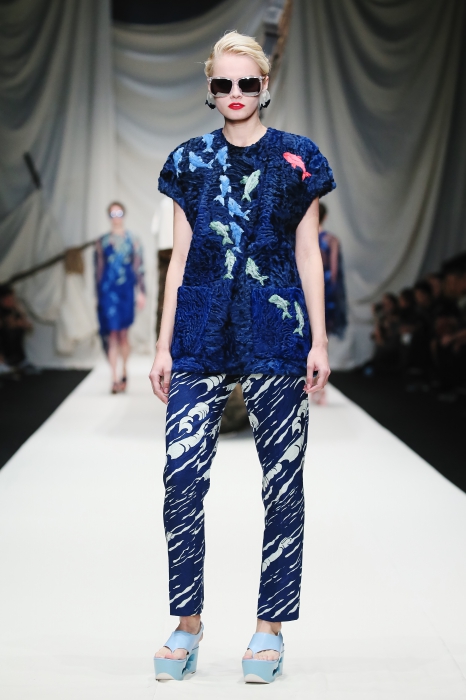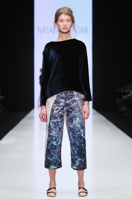 Хедлайнером первого дня Mercedes-Benz Fashion Week Russia в Москве стало шоу Алены Ахмадуллиной. Дизайнер из Петербурга продолжает пропагандировать русские коды: на этот раз главной темой коллекции стала сказка «Садко» с ее подводным миром. Под шум прибоя шоу открыли модели в белоснежных платьях и брючных костюмах, следом — голубые и бирюзовые наряды, а завершали показ глубокие оттенки синего — например, на топах с отделкой в виде морской пены, бархатном платье или меховом пальто.