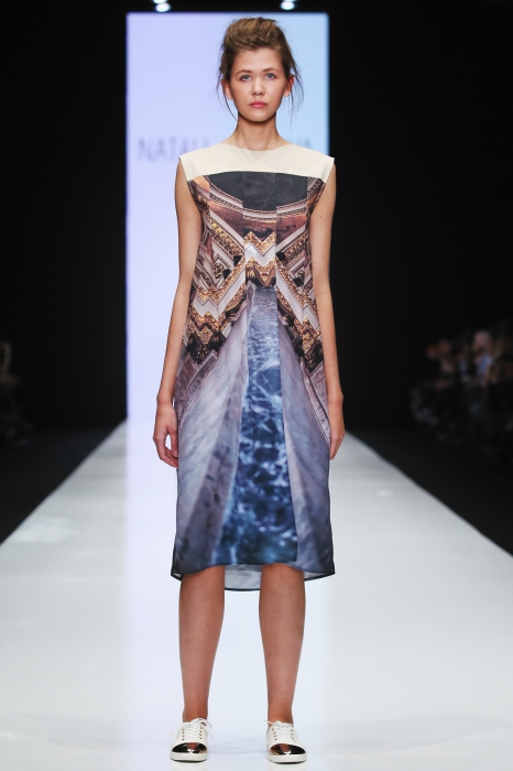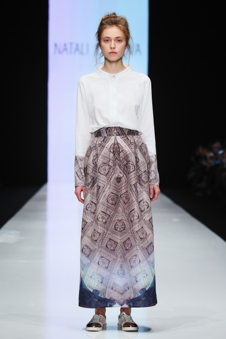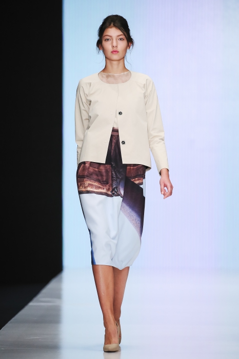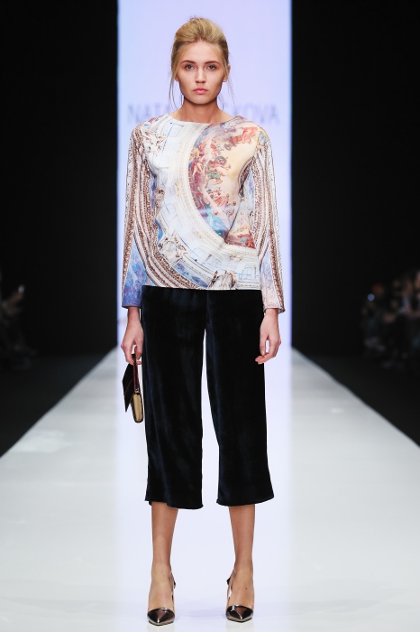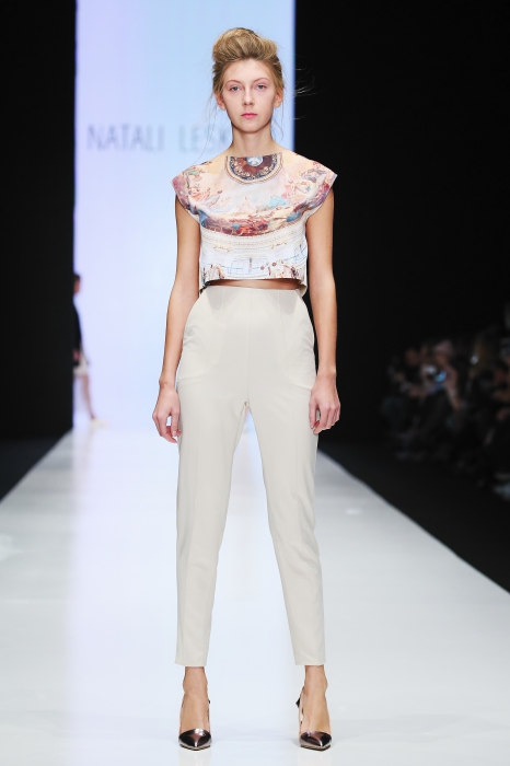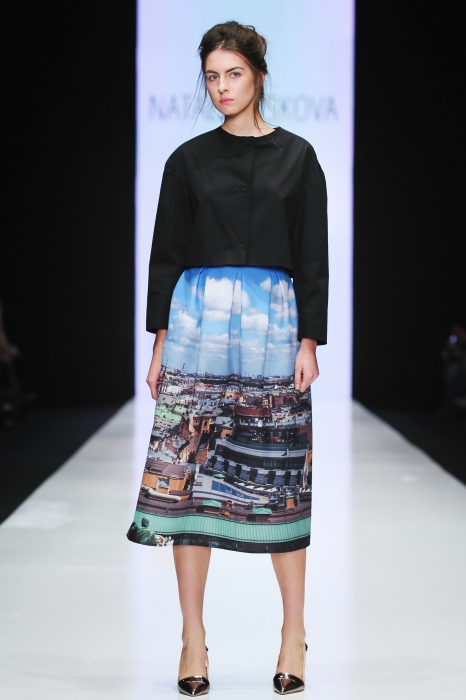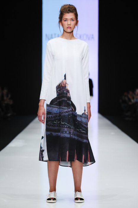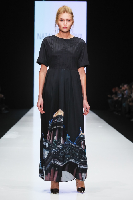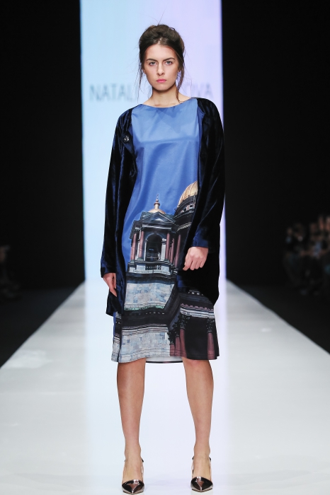 Финалист нашего конкурса «Новые имена в дизайне 2013» не изменяет себя и продолжает выпускать вещи-сувениры. В коллекции молодого дизайнера — повседневные женственные платья, женственные юбки, жакеты и брюки. Всех их объединяют принты с видами Петербурга: Исаакиевский собор, дворцовые интерьеры и витражи Эрмитажа.