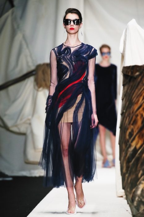 Хедлайнером четвертого дня Mercedes-Benz Fashion Week в Москве стал дизайнер из Петербурга, Женя Малыгина с ее брендом Pirosmani. В коллекции «dEEP EYES» используются традиционный для дизайнера арт плюс фэшн, драпировки, искусственная состаренность вещей и много черного цвета. Всё это вылилось в авангардные комбинезоны, бомберы из прозрачной ткани, костюмы, ассиметричные платья и топы. Вот что говорит о коллекции сама Женя: «Нет задачи понравится или продать, есть задача дать стремление и вовлечь в художественный поток».
