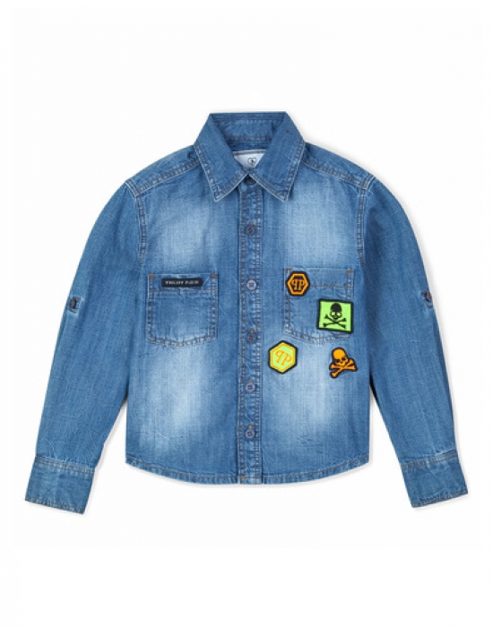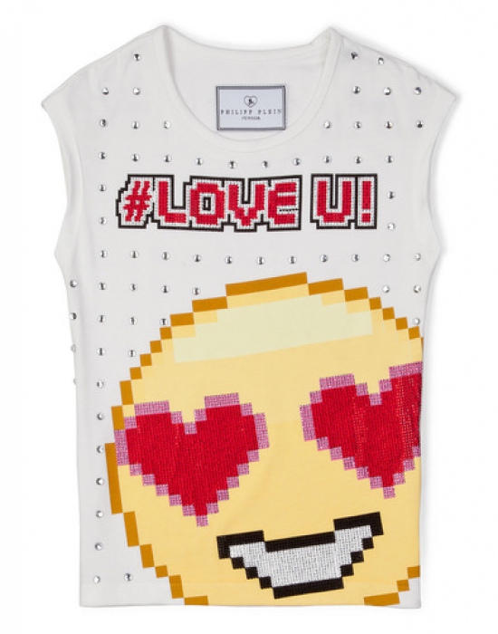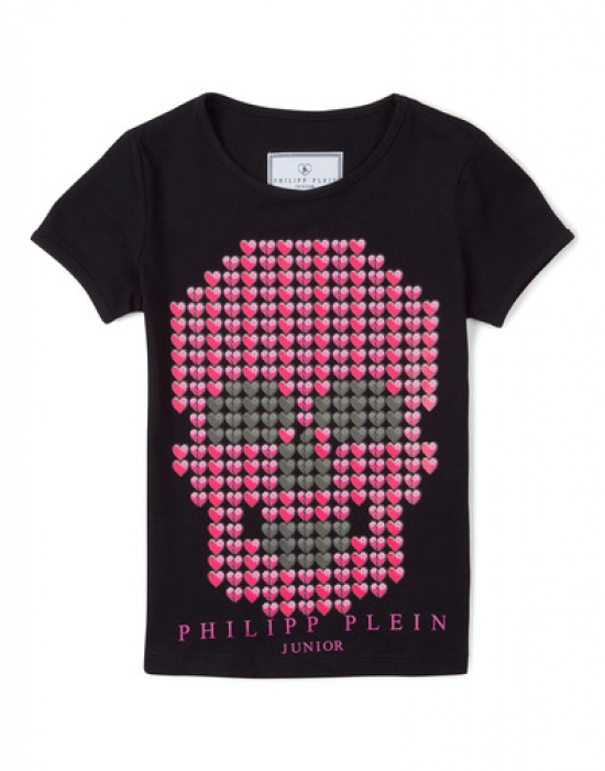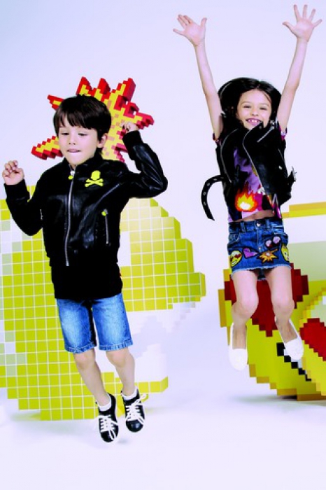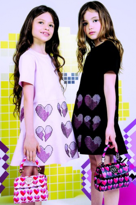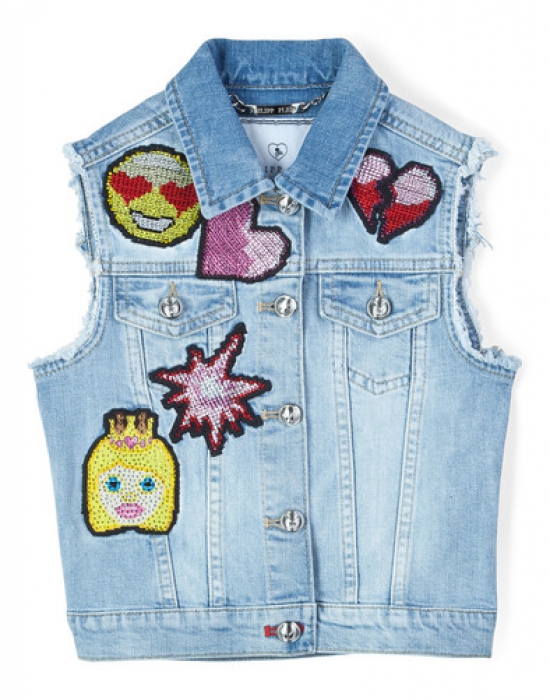 В бутик Philipp Plein в Петербурге приехали вещи для детей. В летней коллекции бренда — джинсовые куртки, костюмы, запринтованные смайлами из «эмодзи», кожаные жилетки и футболки. А фирменный для бренда череп на футболках для девочек и мальчиков складывается из сердечек и пикселей. В аксессуарной линейке — кеды, балетки, лоферы и сумки трапециевидной формы все с теми же пиксельными принтами.