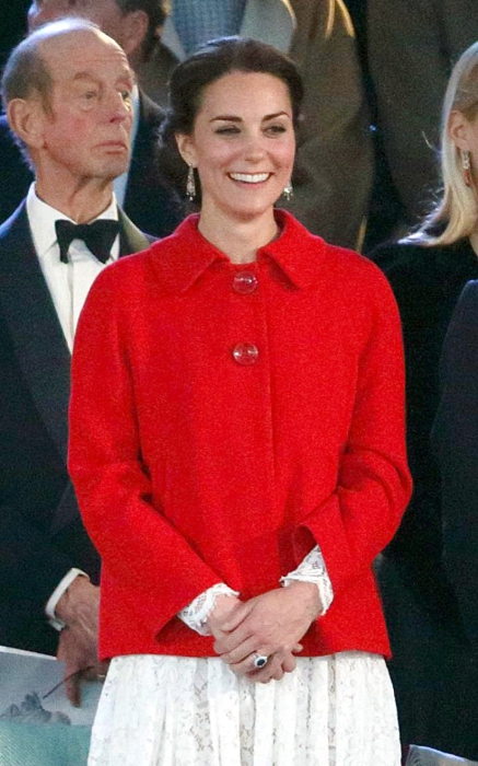 На концерте в честь юбилея Елизаветы II герцогиня Кембиджская появилась в кружевном белоснежном платье и алом жакете. Рассказываем, почему на этот наряд заслуживает внимания и где купить точно такой же.