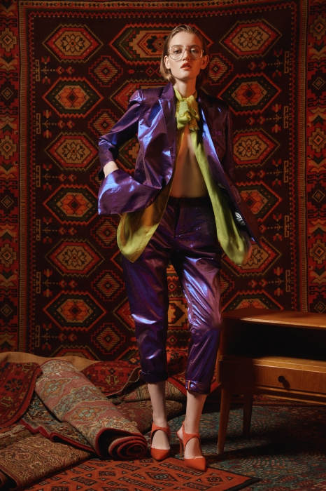 Разработка концепции съемки — для меня один из самых крутых моментов съемки. Это как мануал последующих действий и находок. Обычно за основу я беру три идеи, затем в команде мы проговариваем лучшие и предлагаем варианты заказчику. С Настей мы начали со встречи, посмотрели коллекцию и предыдущие съемки. Ее коллекция о характере, яркой женщине, сложных тканях и деталях, любовью к Востоку, но не прямая отсылка к нему. Хотелось создать сложные многослойные образы: так появились ковры с бесконечными узорами, а свет гарантировано создавал дополнительный слой из желтого и красного цвета»