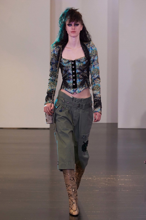 Как и Джереми Скотт, американский дизайнер заигрывает с поп-культурой — в коллекции есть свитшоты MTV с пальмами, как на логотипе канала тридцатилетней давности, а саундтреком к показу стал Duran Duran). Вместе с ними Джейкобс показал много гранжевых вещей — кожаные куртки, расшитые шипами бомберы и трогательные платья на тонких бретелях.