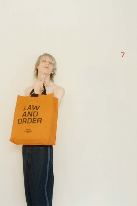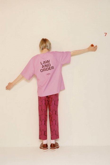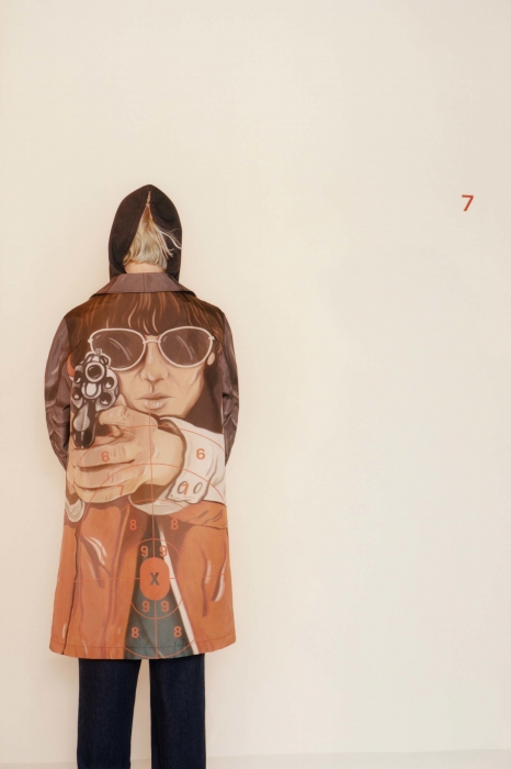 Кожаные куртки и плащи украсили граффити в стилистике 1980-х, футболки и сумки — надписи «Low and Order», а на футуристичных кроссовках появилась знакомая клетка британских панков.