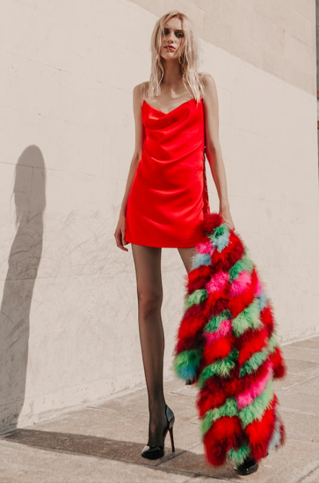 Вещи уже доступны в магазине бренда во «Владимирском Пассаже» и на сайте Ashgrey. Мини-юбки из бархата и кожи будут стоить в районе 10 000 рублей, платья из шифона и атласа можно купить от 11 000 до 15 000, телесные легинсы с принтом-татиуровками обойдутся в 6500 рублей.