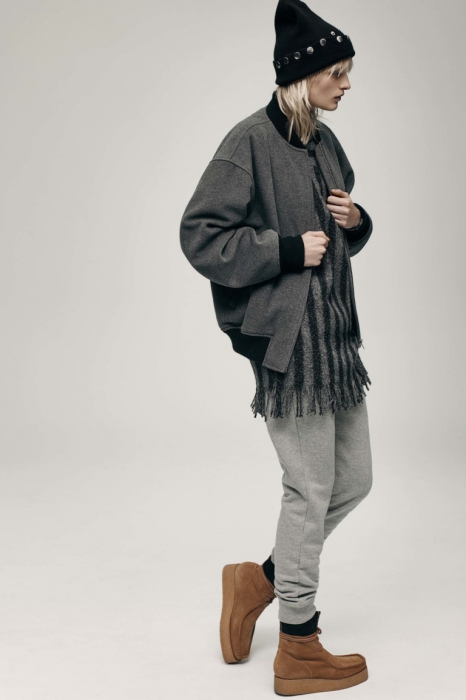 И это еще не все: каждый лук, включая бархатные топы, бомберы и джинсовые шорты в лукбуке сопровождается шапкой-бини и простыми замшевыми ботинками (обязательно с выглядывющими носками). В Петербурге вещи из новой коллекции T by Alexander Wang будут продавать в ДЛТ.