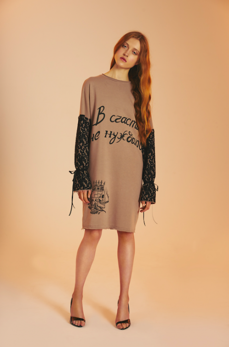 Еще год назад назад героиней коллекций Liza Odinokikh была барышня-крестьянка в кружевном платьях с вышивкой и бомбере с анютиными глазками, а теперь курс бренда резко сменился. Осенне-зимнюю коллекцию молодой дизайнер посвятила русскому китчу. По словам Лизы, ее вдохновили меха леопардовой расцветки, что ассоциируется со словом «кичиться», то есть, выставлять себя напоказ. На принтах и вышивках платьев и блузок можно разглядеть ягоды и цветы русского севера. А надписи «Пока дышу — надеюсь» и «В счастье не нуждаюсь» на шелковых платьях и топах имитируют криминальные татуировки из 1990-х.