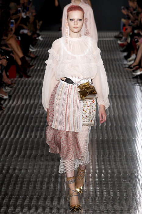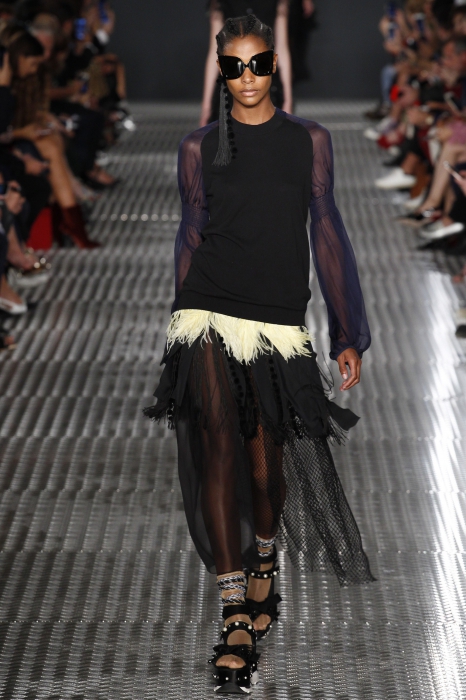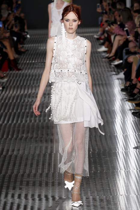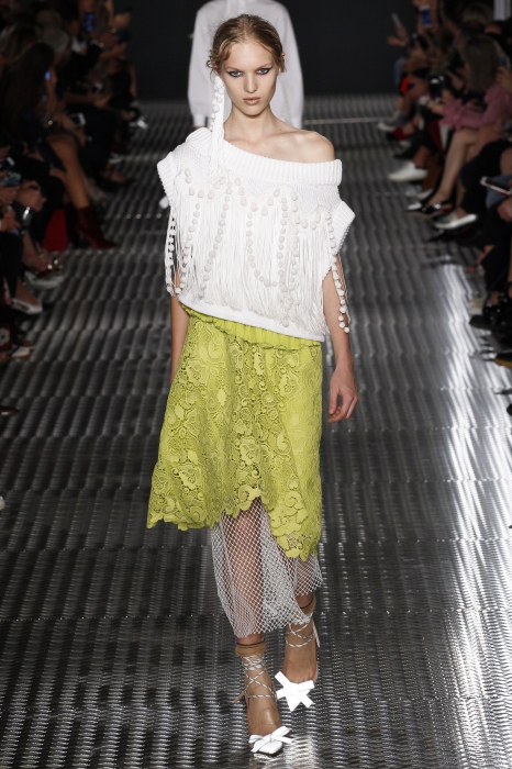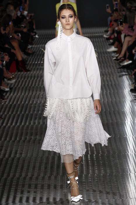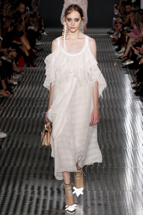 «Я очень долго играл с элементами мужского гардероба в женских коллекциях, и сейчас мне захотелось ультраженственности», — так описал весенне-летний сезон Алессандро Дель Аква. Размышляя о женственности креативный директор No. 21 избегает шаблонов: каждое демикутюрное платье сопровождает нижний слой из сетки, шифоновые рукава свитшотов украшают оборки, а топы — страусиные перья.