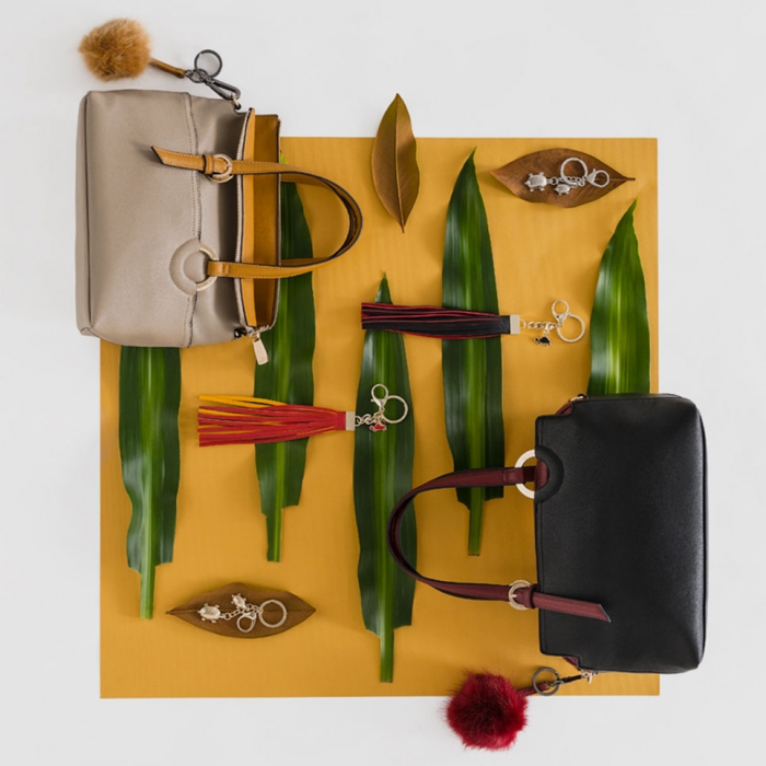 Как и всегда, большое место в коллекции отводится сумкам для покупок, портфелям, сумкам через плечо, клатчам и маленьким вечерним сумочкам. Есть целая серия сумок-трансформеров, которые подойдут на все случаи жизни. Палитра коллекции насыщена осенними цветами горчицы, красного кирпича, светло-серыми оттенками и всеми тонами зеленого, так популярного в этом сезоне. Модели для стремительных девушек и молодых людей украшены клетчатыми принтами и этническими узорами в стиле 70-х. Бренд Carpisa также выпустил к этому сезону линию брелков и брошей с инициалами — они могут стать персональным дополнением к образу.