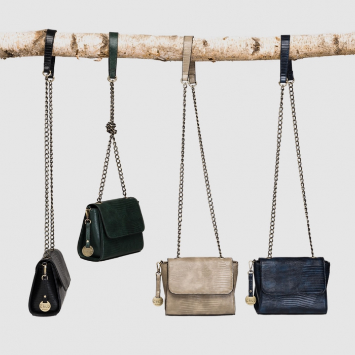 Известные испанские сестры Пенелопа и Моника Крус создали для осенней коллекции бренда две капсульные линии. Первая линия — это яркие модели с геометрическими принтами и нубуковой отделкой, а также металлическими аксессуарами, имитирующими состаренную латунь. Все сумки выполнены в трех тонах: голубом, серо-коричневом и сером. Вторая линия отличается полужесткой текстурой и отделкой под кожу ящерицы. Зимой капсульная коллекция сестер Крус пополнится новыми моделями.