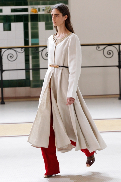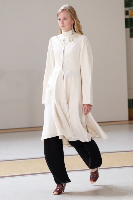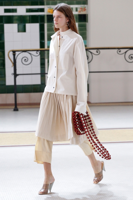Кристоф Лемэр — аскет из мира моды: он мог бы делать одну коллекцию раз в пять лет, и она была бы востребованна на протяжении всего этого времени. Вещи бывшего креативного директора Hermes всегда вне времени и вне сезона: лаконичные платья, расслабленные брюки, тренчкоты, рубашки и брюки идеальной посадки. Вместе с ними в коллекции появились непривычные для любителя мешковатого кроя блузы с оголенными плечами, обтягивающие топы на тонких бретельках.