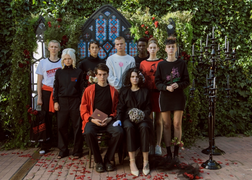 Тема похорон искусства стала центральной и для рекламной кампании бренда, который снял фотограф Эрик Панов. Все вещи уже доступны в онлайн-магазине бренда: футболки и майки можно купить от 45$, мини-юбки — за 90$, а бомбер — за 290$.
