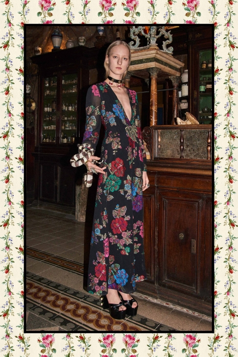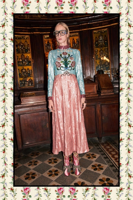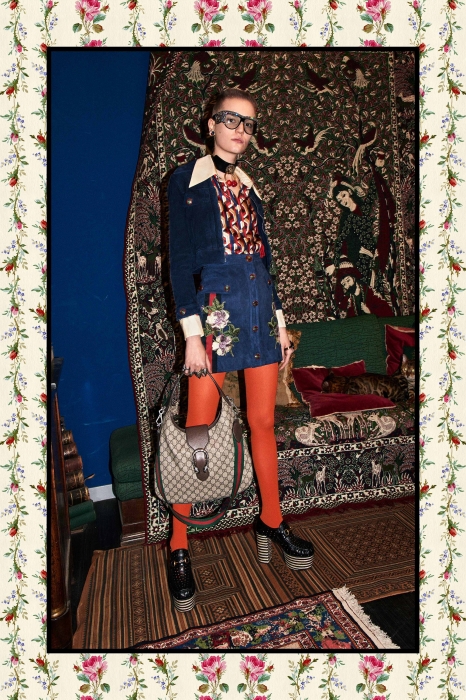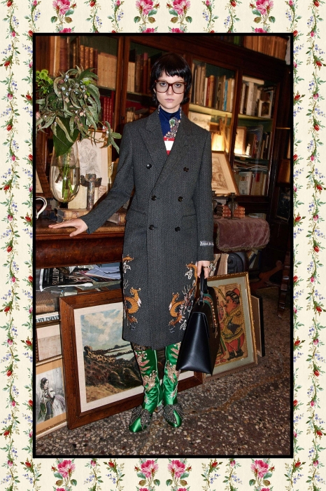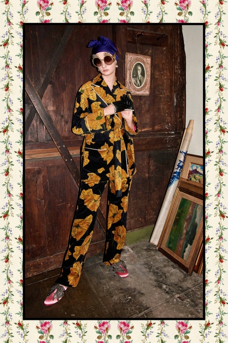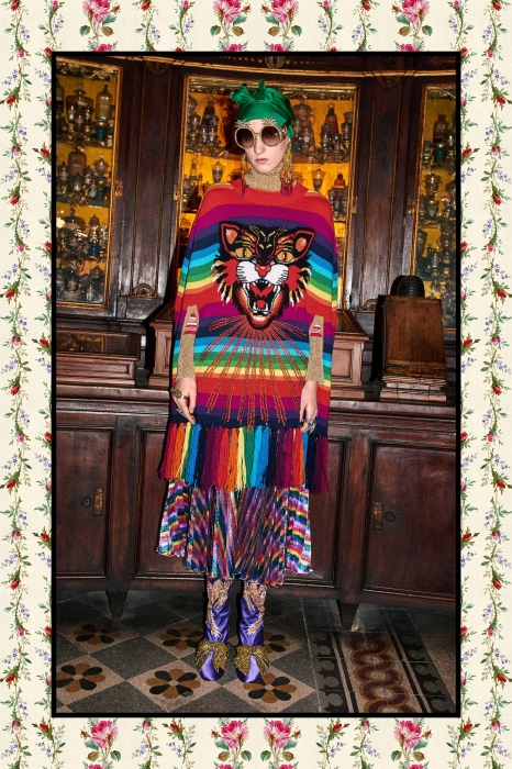 Ковры-самолеты, мистические пантеры, огнедышащие драконы, летающие тарелки и даже Сатурн — только Алессандро Микеле, креативному директору Gucci, под силу разместить все это на платьях в духе викторианской эпохи, вязаных комплектах и бархатных костюмах.