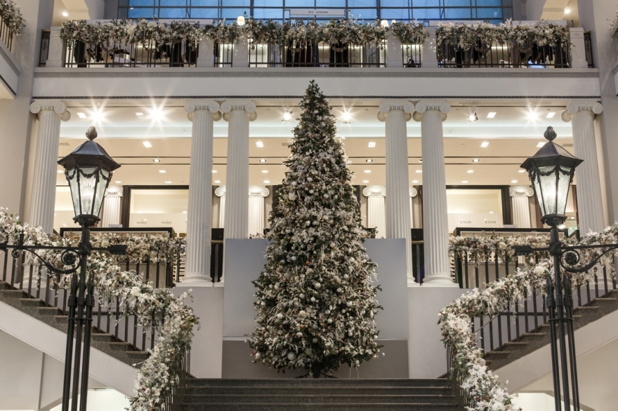 Трехметровая елка, сказочные витрины и карусель — еще не все, что приготовил универмаг к Новому году. На пятом этаже заработал новогодний базар с елочными игрушками ручной работы, украшениями и настоящими деревянными щелкунчиками. Бояться идти за всем эти в люксовый универмаг не нужно: действительно красивые елочные игрушки, например, здесь можно приобрести от ста рублей. Любую мелочь еще и бесплатно упакуют на подарочной станции.