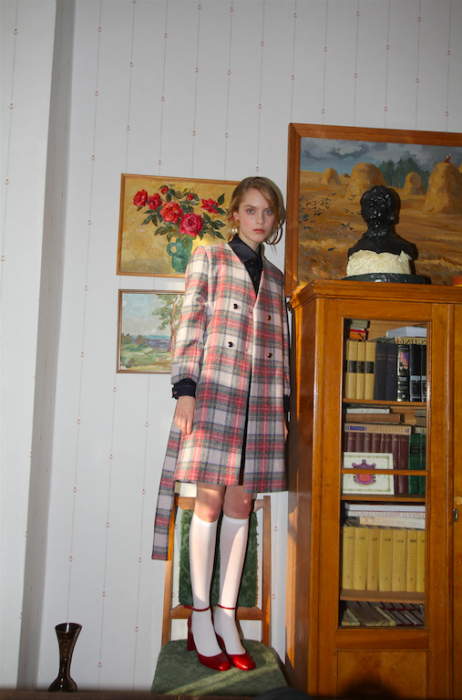 Локальный бренд Estetica, который основали журналист Катя Работа и искусствовед Женя Балтинских, показал новую коллекцию в духе советских шестидесятых, где есть платья в клетку, напоминающие о советской форме юбки, жакеты с вышитой цаплей и пальто. Лукбук в квартире с глобусом, магнитофоном Yamaha и советскими обоями снял Саша Чайка.