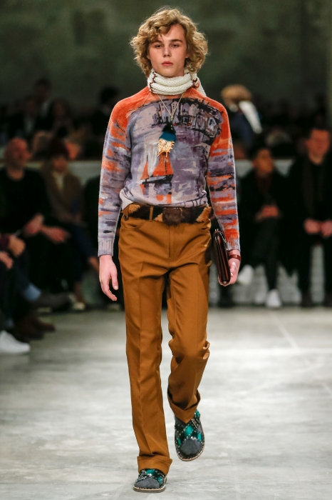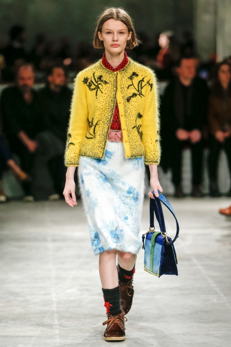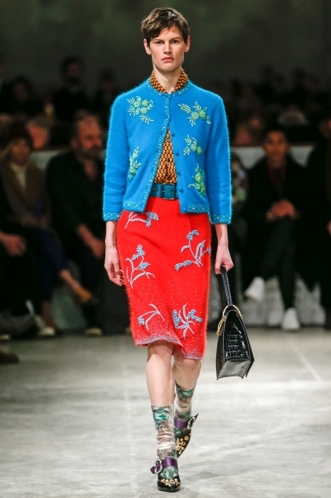 Несмотря на любовь Миуччи Прады к чудаковатым вещам, коллекция Prada получилась настолько повседневной, что самым популярным словом в отзывах критиков WWD и Vogue стало «normality». Новая «нормальность» у бренда — это вельветовые костюмы для мужчин и женщин, кожаные плащи из семидесятых и свитеры с V-образным вырезами.