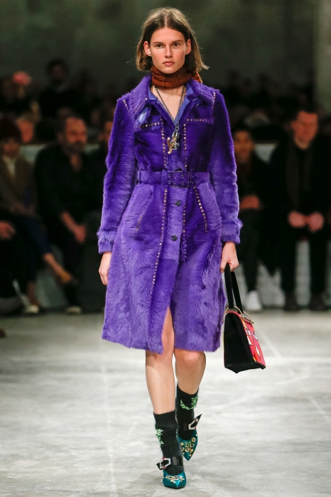 «Я долго вдохновлялась большой архитектурой, искусством, большим всем. А сейчас пошла по противоположной дороге — больше человечности, простоты, реальности», — так прокомментировала коллекцию Миучча Прада. Единственное, что дизайнер не смогла упростить, — это обувь и аксессуары: ботинки с фиолетовым мехом, ракушки на цепочке и туфли с лентами и драгкамнями уже попали в наши вишлисты.