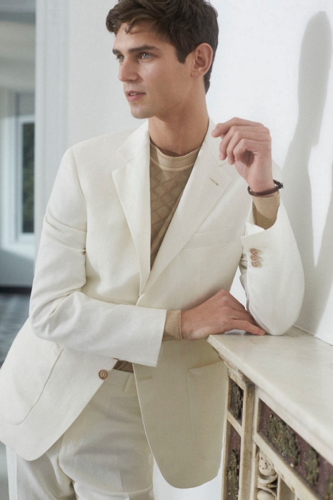 В весенне-летней коллекции мастера марки Canali отдают дань уважения традиционному пиджаку Kei и его неповторимой бесструктурной плавности: он полностью повторяет силуэт своего владельца благодаря отсутствию подкладки и строгой линии плеча. Впервые этот крой под названием unconstructed представлен в линии костюмов и брюк. В этой коллекции сделан акцент и на текстуре, и на плетении материала как на основной теме мировых подиумов: сочетание льна и шелка благородных оттенков гармонируют с элементами, изготовленными вручную из итальянской ткани malfile.