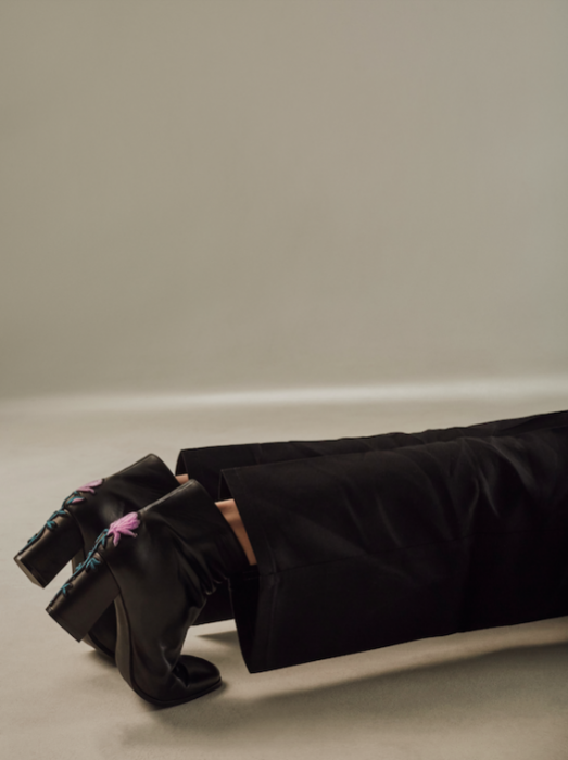 Магазин Даши Миловидовой Nevalenki Concept Store выпустил собственную коллекцию обуви. В ней — ботинки с цветочной вышивкой на каблуках, туфли в мужском стиле с вышитой надписью «Иду к мечте» и ботильоны с контрастным красным каблуком.
