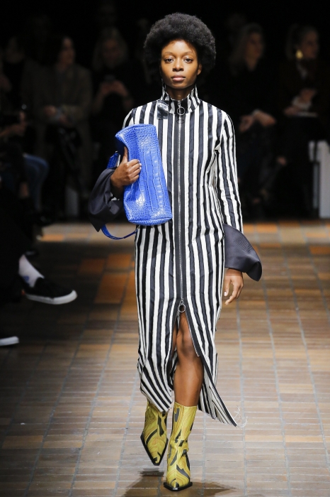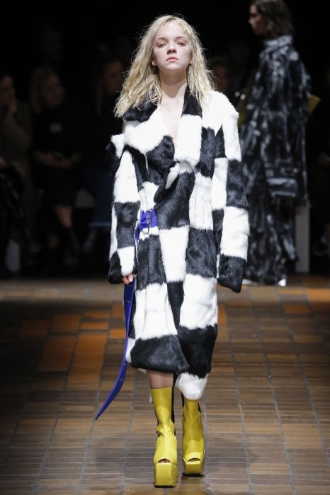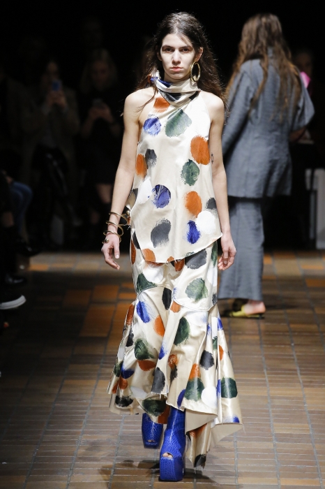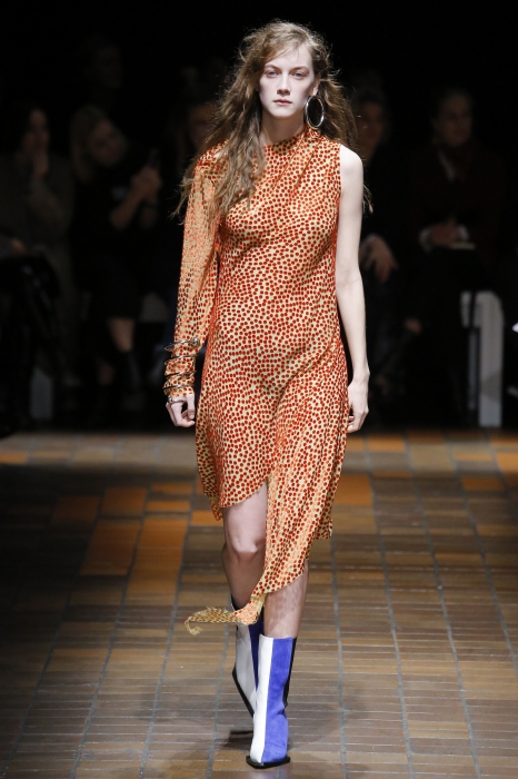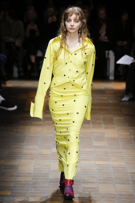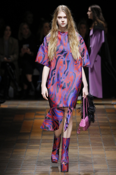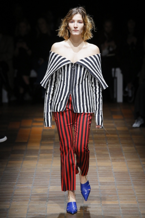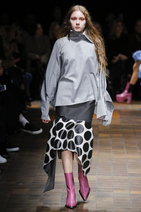 Марта Маркес и Паоло Альмейда представили осенне-зимний сезон на London Fashion Week. В коллекции есть почти все хиты трендбука — широкие плечи, длинные рукава, оборки, ботфорты и гигантские платформы: но все они замиксованы в узнаваемой для бренда стилистике 1990-х и 2000-х.