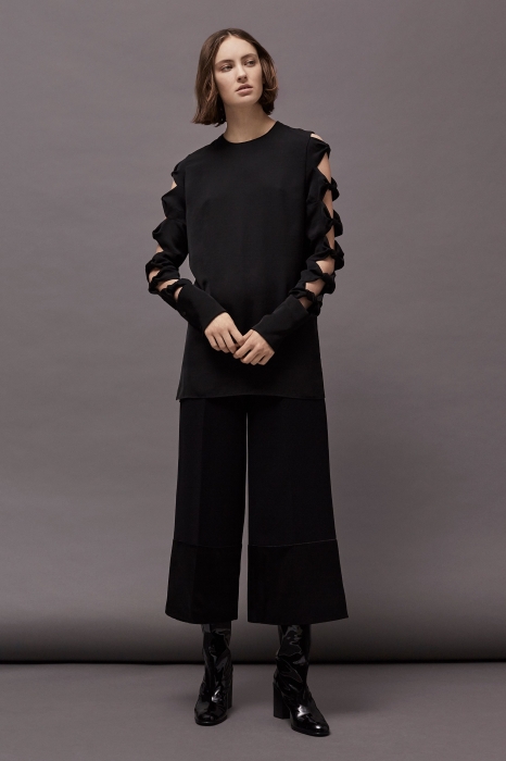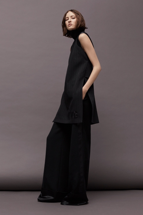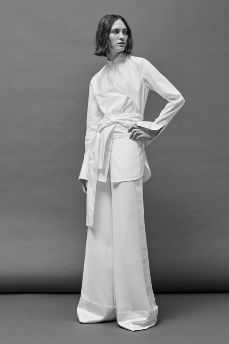 В осенне-зимней коллекции второй линии Victoria Victoria Beckham — только базовые вещи: белые рубашки, но с бантом на поясе, повседневные платья, но с узлами, свитеры, но с остромодными удлиненными рукавами, и широкие брюки.