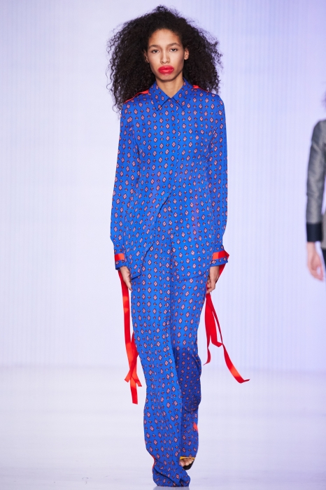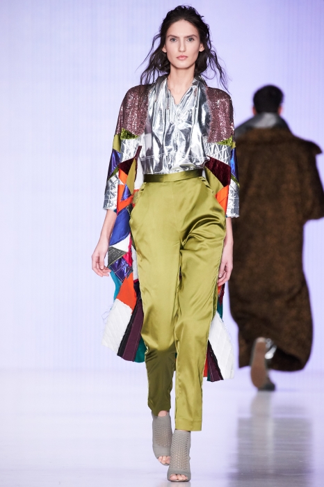 Мы увидели бархатные костюмы, шелковые запринтованные комплекты, пестрые бомберы с пэчворком и бахромой и стеганые куртки в золотых и серебряных вариациях. А еще остроумный стайлинг, который планируем повторить в следующем сезоне: например, сочетание цветочного платья с кожаными жилетами и как минимум три принта в одном луке.