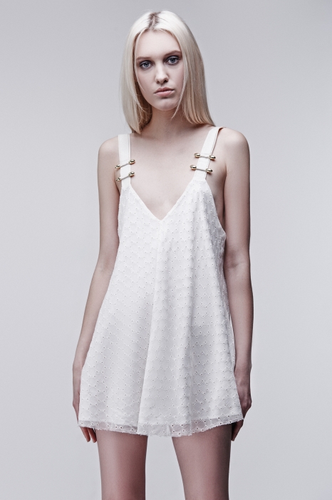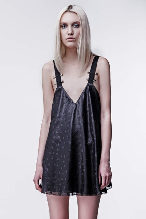 «В мудборде сезона — военная форма красной армии, клубная среда 1980-х и советские фильмы перестроечного периода. Платья из новой коллекции стилизованы под гимнастерки и офицерские кители, широкие бретели напоминают о патронных лентах, а гвоздики на принтах можно воспринимать как символ революционного духа».