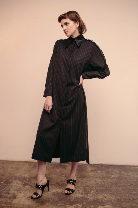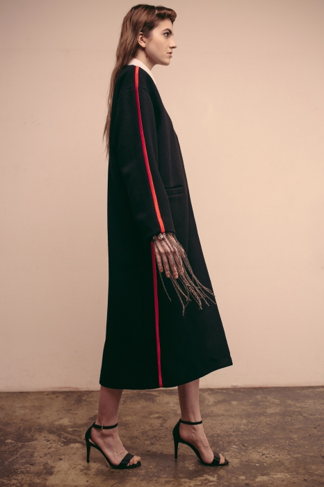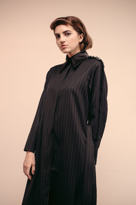 Финалистка нашего проекта «Новые имена в дизайне 2016» Маруся Низовцова представила лукбук новой коллекции. В ней — комфортные вещи на каждый день: пальто, платья-рубашки, жилеты и сарафаны. При этом почти на каждой вещи есть детали, которые заслуживают внимания: пальто украшают лампасы из натурального шелка, рукава платья декорированы бахромой, на рубашках — вырезы по бокам и авторские запонки, а на жилетах — металлические бусины ручной работы.