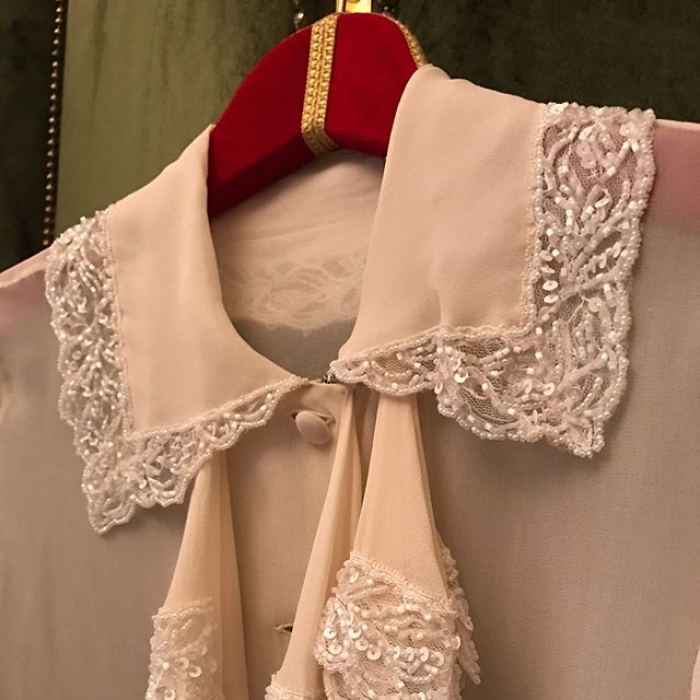 «Наряды из новых сезонных коллекций давно не вызывают у меня экстаз! А вот вещи с европейских «блошек» сшиты из интересных тканей, украшены ручной вышивкой. Причем и крой актуален: помимо безумных тюрбанов и театрального вида блуз в моем магазине будут и очень крутые джинсы с супервысокой талией — ни одни современные mom так не сядут. Хотите дикий антикэжуал – забирайте и раритетную шубу из настоящего меха леопарда (а их запретили шить в начале 1980-х), и кутюрный жакет Yves Saint Laurent, целиком сшитый из черных перьев. Есть и платья Виктора Косты, и еще несколько вещей от дизайнеров, модные дома которых больше не существуют. По переписи — больше 150 предметов, и коллекция постоянно растет (так что я не боюсь, что все раскупят!): совсем недавно ассортимент пополнил кутюрный костюм Emanuel Ungaro, расшитый розами, с каймой из бисера по подолу юбки и расписанными красками цветами.