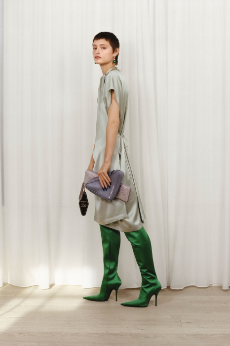В обувной линейке — уже знакомые нам ботильоны до бедра и мюли на невысокой шпильке. Коллекция начнет продаваться с сентября: напомним, в Петербурге Balenciaga представлена в ДЛТ и мультибренде DayNight.