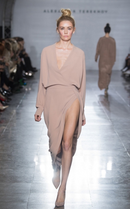 Десятилетие бренда Александр Терехов отмечает под лозунгом «Назад в будущее» — оммажем эстетике 1980-х и футуристическим сюжетам: в кампейне правят нарочито сексуальные вырезы до бедра, провокационное мини, струящиеся фактуры с пайетками и космический металлик всех оттенков холодного. (concept store nevsky 152)