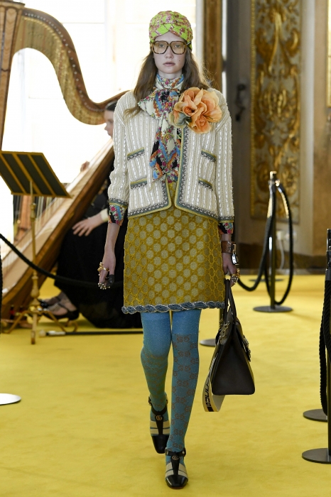 Помимо исторического и художественного лейтмотивов, в коллекции также много иронии: Микеле обыгрывает всеобщее помешательство логоманией и — намеренно пишет Gucci с ошибкой, мотивирующими лозунгами — и призывает всех «гуччимизировать» себя и нормкором — делая из олимпиек и бомберов произведение искусства. Дизайнер тем самым намекает — даже тем, что ты обожаешь, можно «объесться» до тошноты, и предлагает искать вдохновение в классике и не терять свою индивидуальность.
