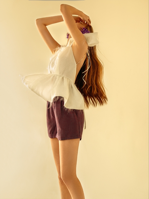 Дизайнер из Санкт-Петербурга и призер конкурса «Новые имена в дизайне-2017» Петр Старостин выпустил пятую по счету коллекцию. Она стала своеобразной одой долгожданному теплу и прощанию с колготками: об этом говорит наличие в ассортименте коротких юбок с завышенной талией, деконструированных шорт и коктейльных платьев. В коллекции немало отсылок к эпохе Возрождения: на исторических фресках можно увидеть такие же объемные приподнятые рукава, корсеты и рюши, что и в новом лукбуке PSSP. Однако у Петра они вписаны в рамки актуальных для современной моды графических линий, однотонности и минимализма.