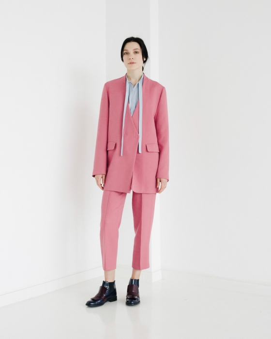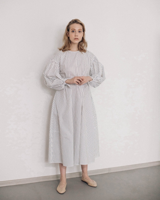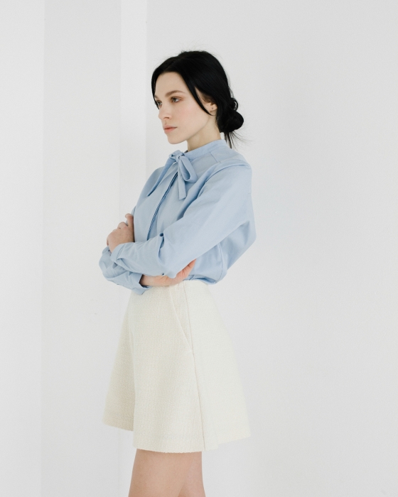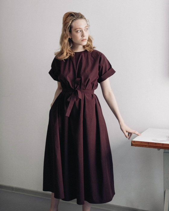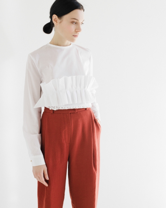 Первая — базовая — с платьями из итальянского хлопка, которые представлены в пастельной гамме, аккуратно перевязаны поясом и сочетаются как с кроссовками или нюдовыми балетками, так и с классическими туфлями на небольшом каблуке. Вторая линия — это пальто, объемные рубашки и жакеты, которые не ориентируются на смену сезонов и, соответственно, плотность тканей, а играют с фактурами, монохромом и деталями (например, рюшами-гармошками). Отдельной линией бренда является couture: в ее рамках Альбина шьет вещи вручную и всегда в единственном экземпляре. Работа над платьем может занимать порядка 2 месяцев, но при этом позволяет проявить фантазию, не ограничиваясь коммерческой составляющей.