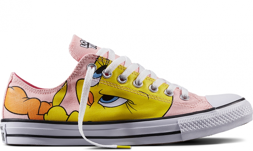 Мульт-зверушки, которые появились на экранах еще в 1940-х годах, сегодня актуальны не только в детской моде, но и во взрослой, поэтому новая обувь Converse представлена в размерах от 17 до 41-го. Купить ее, а также принтованные футболки и кепки можно на сайте марки по ценам от 30 до 60 евро.