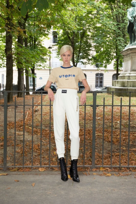 Российский бренд Sorry I’m not, одевший Гвен Стефани, певицу Холзи и модель Винни Харлоу, представил четвертую подиумную коллекцию одежды «Утопия». В ней — футболки с надписью «Персонал», толстовки с объемными рукавами, провокационные комбезы, брюки на кулисках, футуристичные олимпийки и платья, похожие на стянутый парашют. Как объясняет создатель марки Никита Моисеенко, «мир Утопии — это параллельная реальность, где свитшот превращается в вечерний наряд, а корсеты становятся повседневностью».