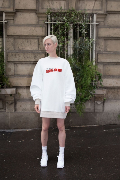 Показ совмещенной коллекции Sorry I’m Not (в нее одновременно вошла одежда сезонов осень-зима 2017-18 и весна-лето 2018) пройдет осенью. После презентации вещи приедут в магазин Au Pont Rouge.