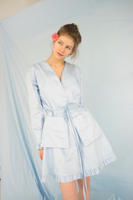 Участница проекта IZBA, возродившего предметный дизайн в России, и автор оригинальных игрушек Fedor Toy Аня Дружинина представила новую капсульную коллекцию в рамках своего бренда M_U_R. В ней девушка продолжила создавать вещи для излюбленных фарфоровых кукол, но только реалистичных размеров, — хлопковые брюки, топы-бюстье с баской, юбки миди и платья-халаты с крупными карманами. Все они сделаны из высококачественного хлопка голубого цвета и лишены каких-либо принтов или нашивок. Единственным средством стайлинга служит деревянная сумка, которую Аня разработала совместно с дизайнером Александром Каныгиным.