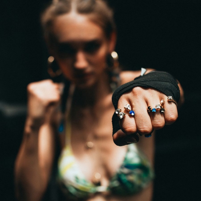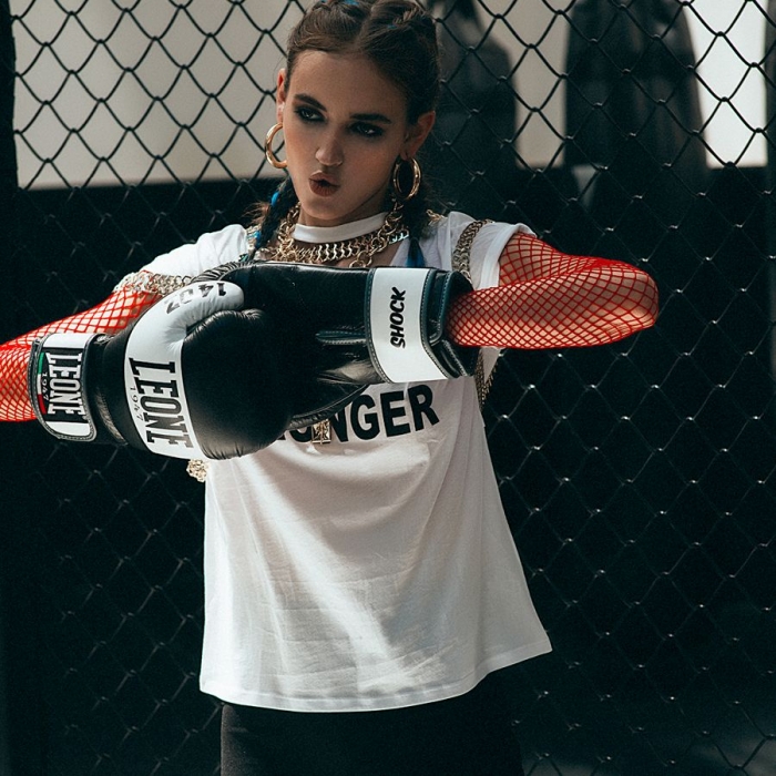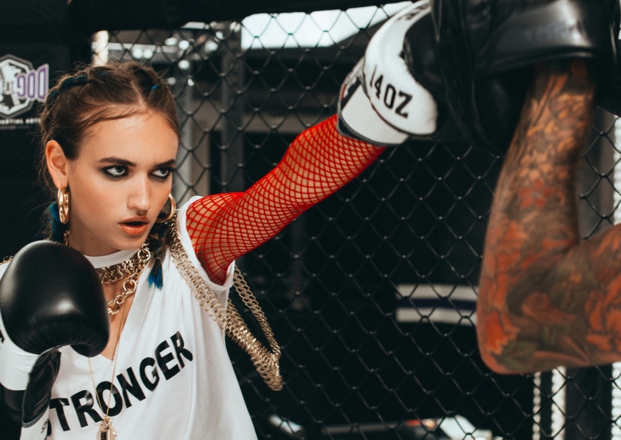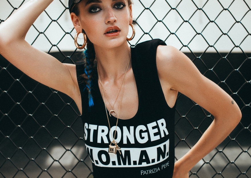 Бренд женской одежды Patrizia Pepe представил осенне-зимнюю капсульную коллекцию «Stronger», в которую вошли вещи для плавания, фитнеса, бега и повседневной жизни. Это удлиненный бомбер, нюдовые леггинсы, принтованные кроп-топы, боксерские шорты, толстовки с логотипами и «феминистские» боди с надписью «Stronger Woman». Лукбук и промо-ролик, снятые на ринге для боев ММА, показывают, как носить каждую модель из коллекции: тренировочные брюки запросто сочетаются с босоножками на шпильке, в дополнение к футболке идут сетчатые нарукавники и цепи, а толстовка с нашивкой-змеей перевязана широким поясом-корсетом.