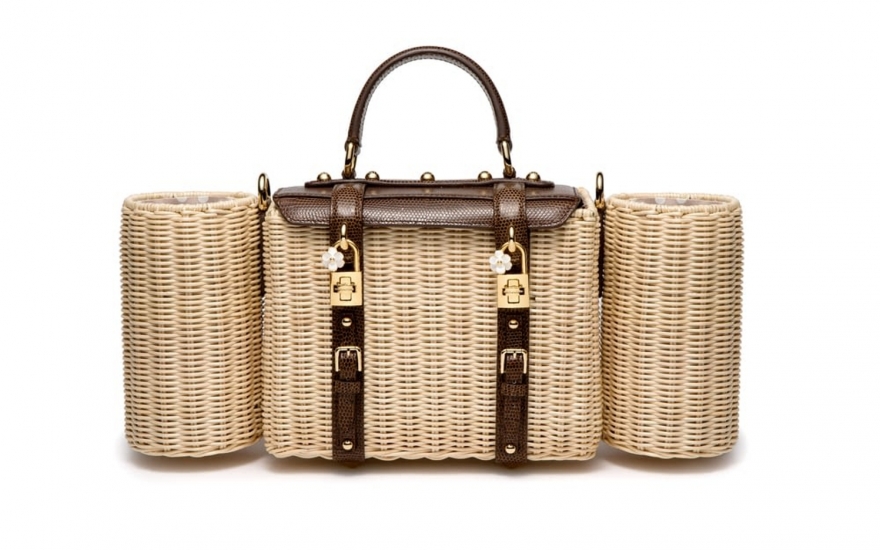 Почему именно эта плетеная сумка-корзина из новой коллекции Dolce & Gabbana идеальна для августовского пикника? Потому что в нее влезает не одна, а целых две бутылочки рислинга. (ДЛТ)