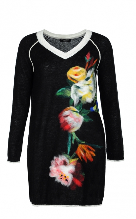 В итальянской марке Twin Set выбрали самые красивые цветы из натюрмортов малых голландцев и повторили их в акварели на непременном черном фоне. («Кенгуру»)
