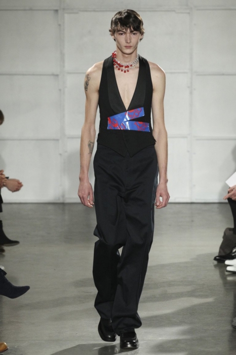 В магазины стали поступать маст-хэвы нового осенне-зимнего сезона: пародия на сумку IKEA Frakta от Balenciaga, космические одеяла от Chanel и туфли-ролики от Saint Laurent, в которых невозможно ни встать, ни сесть. Дизайнер Раф Симонс, который, помимо Calvin Klein, активно занимается одноименным брендом, уверен, что список покупок на следующий сезон не может обойтись без строительной скотча. Как им разнообразить фэшн-образ, он показал на предпоследнем мужском показе: изолента с надписями «Walk with me», «I love you» и «RSYP Your project» перевязывала клетчатые пиджаки и монохромные пальто, а также заменяла пуговицы на black-tie-жилетах.