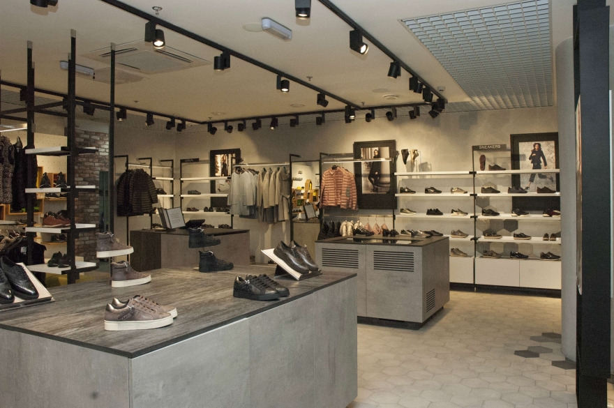 Итальянская марка Geox открыла обновленный магазин в центре Петербурга: на площади 125 кв. метров в ТК «Невский центр» заработал восьмой монобрендовый бутик с коллекциями мужской, женской и детской обуви и верхней одежды. Среди рейлов с фэшн-релизами расположился огромный сенсорный экран, который поможет покупателям узнать про все ключевые технологии марки, подзарядить смартфон и получить доступ к Wi-Fi-сети. Само пространство магазина оформлено в стиле лофт с его характерными элементами: необработанным бетоном, металлом, керамикой и деревом. Большие стеклянные витрины символизируют прозрачность всех процессов на фабриках Geox, а входная дверь с круглыми отверстиями — отсылка к фирменной перфорации в подошве.