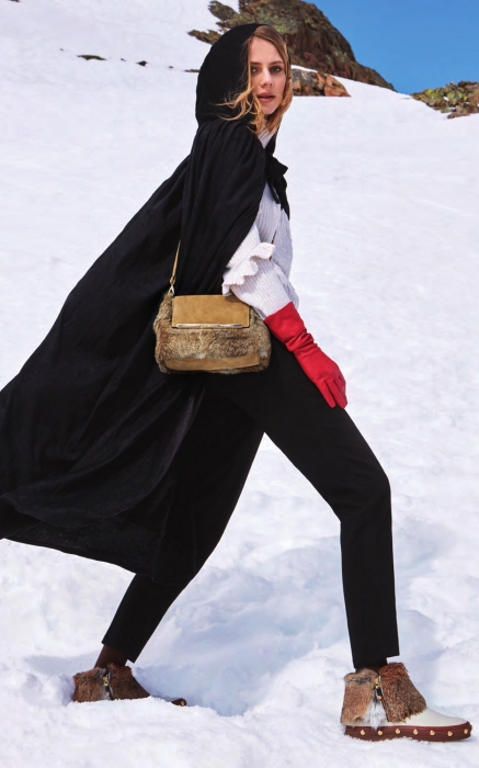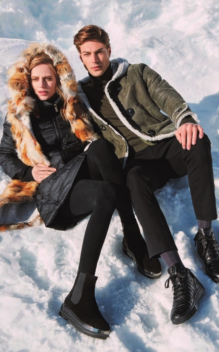 Фоном для рекламной кампании Baldinini осень-зима 2017-2018 стал заснеженный горный ландшафт: на нем отчетливо видны все яркие оттенки, которыми известен бренд, качество натурального меха и характер моделей. В основе всех линий по-прежнему лежит романтичность цвета — красного, бирюзового, изумрудного — итальянская элегантность формы и женственность не столько высоких в этом сезоне каблуков.