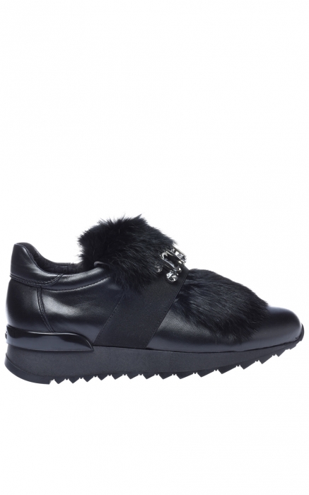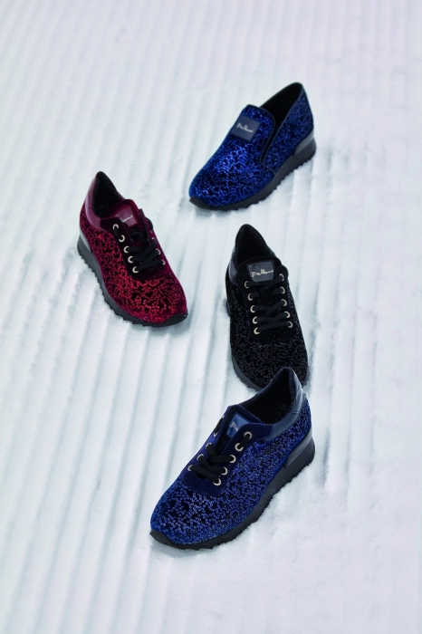Традиционно коллекцию Baldinini можно разделить на две линии. Первая - это тренды, цвета и каблуки: армейские ботинки, ярко-красные (самый модный цвет сезона, кстати) ботфорты, туфли металлических оттенков и леопардовые принты на замше. Здесь же большее внимание уделено лакированным моделям и декору, среди которого - ремешки, заклепки, помпоны, однотонные и разноцветные. Вторая линия объединяет пары, в которых не страшно ни на катке, ни на горных склонах: комфортная обувь не скользит из-за плоской подошвы и греет благодаря отделке из меха норки и лисицы.